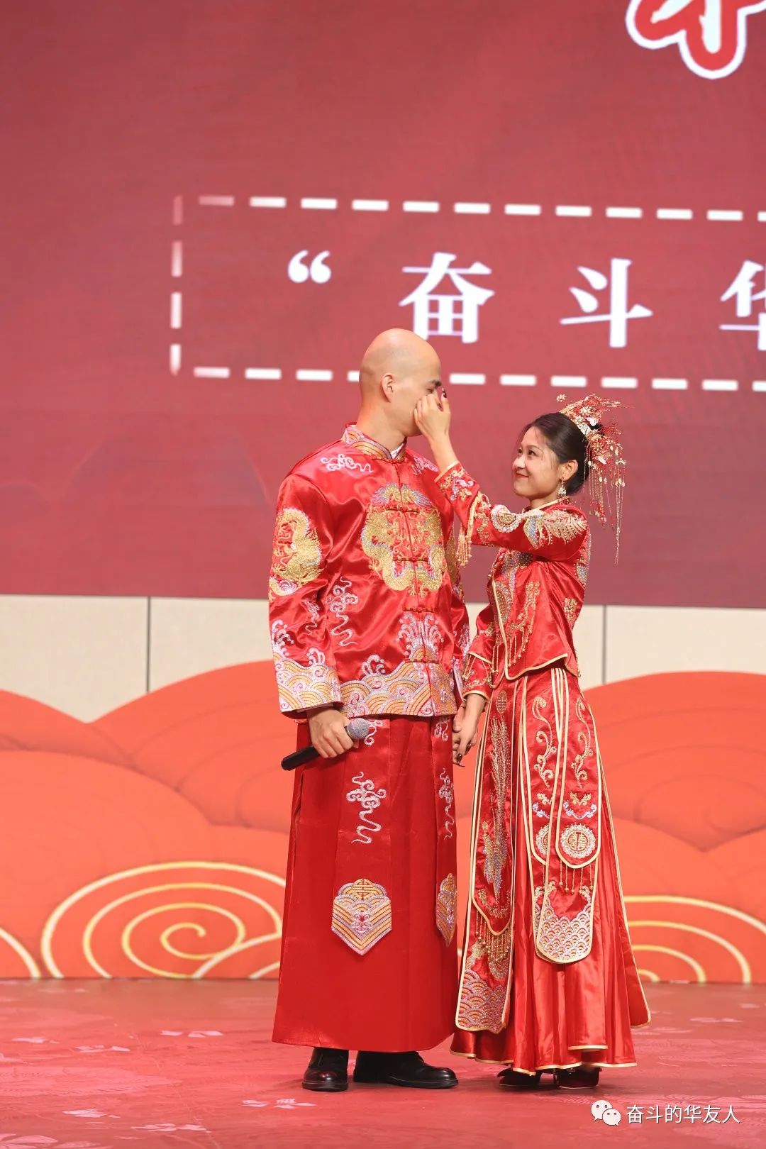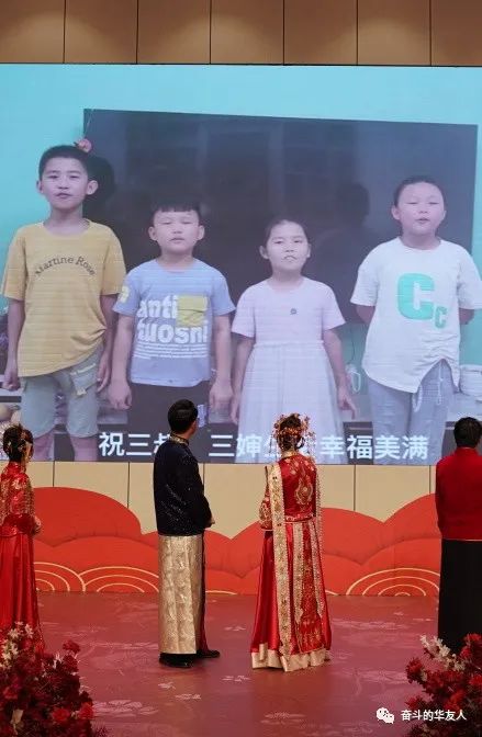 “新人行合巹之禮,甘苦共嘗……。新人行結發禮。金剪裁出愛情果,為君結發許終生。夫妻對拜,一叩首。禮請新人相對而立,共同宣讀夫妻同心詞。”臺上,新人們舉行著各項禮節儀式,臺下,賓朋們滿眼祝福,看著他們來到華友、相識華友、相知華友、相愛華友再到現在安家華友,感受這花開結果的過程。