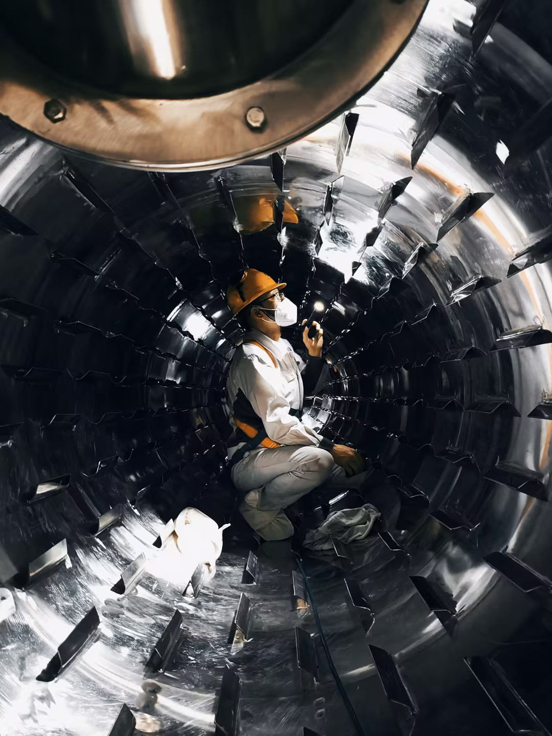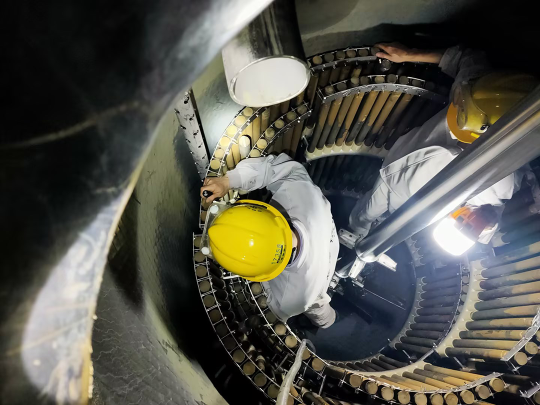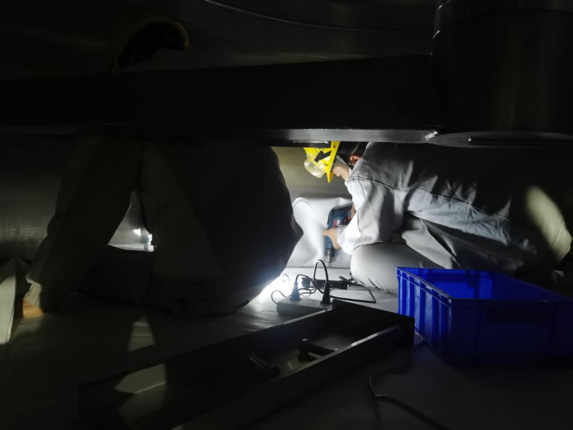 數不清多少個日夜,他們蜷縮在一個小空間里面。或是檢查設備,或是安裝管道,或是日常清理,燈光下的他們閃爍著華友人自強不息的精神。