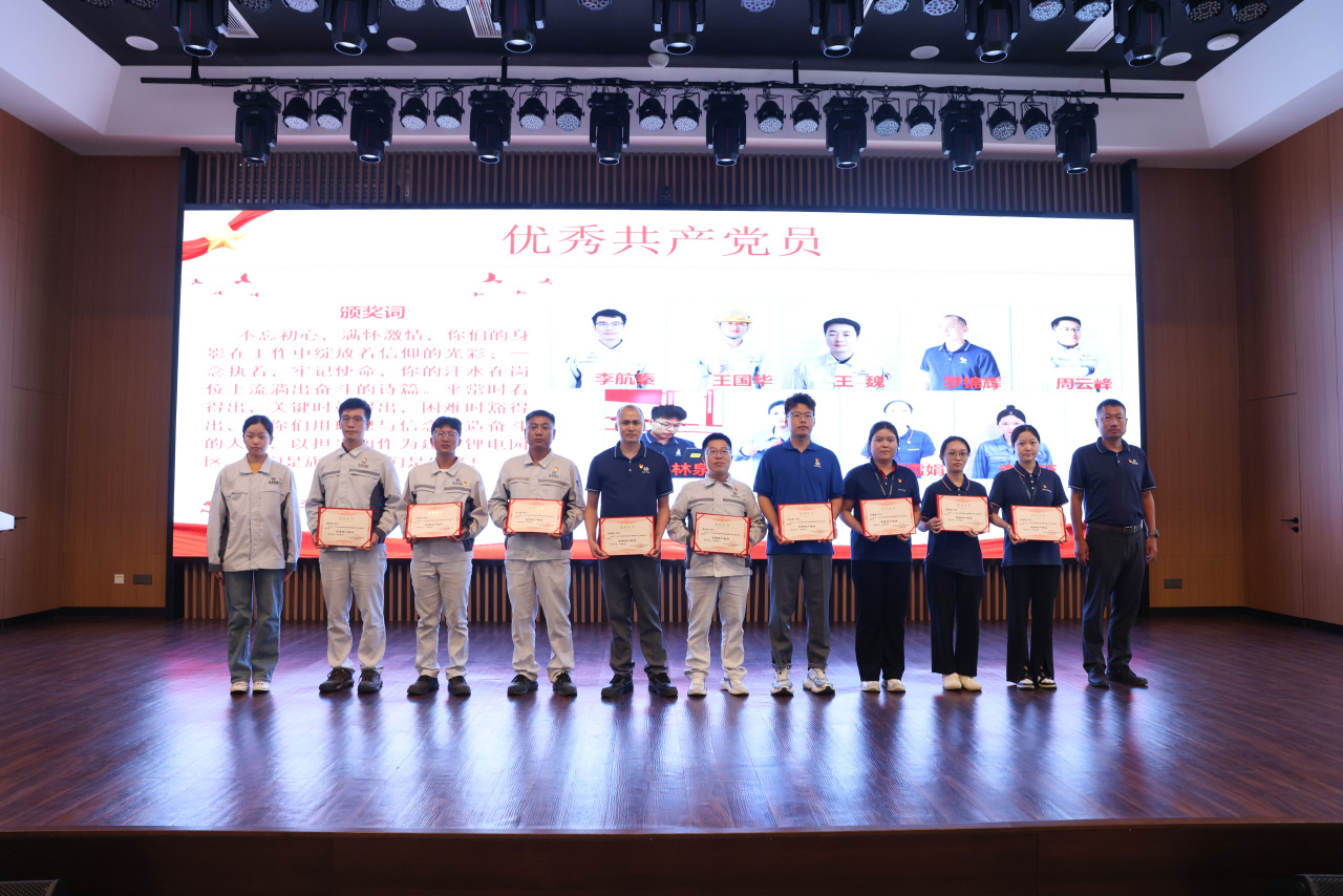 2025年7月3日,中共華友廣西產業園委員會隆重召開慶祝中國共產黨成立104周年黨員大會,園區在冊黨員及發展對象80余人齊聚一堂,共同回顧黨的光輝歷程,展望未來工作方向。會議全面總結了2024年園區黨建工作成果,并部署了2025年重點工作任務,進一步凝聚思想共識、激發奮進力量。