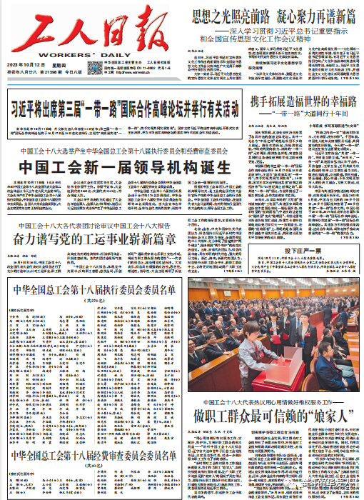 新的五年,新的征程。報告指出,各級工會、工人階級要緊密地團結在以習近平同志為核心的黨中央周圍,以習近平新時代中國特色社會主義思想為指導,全面貫徹黨的二十大精神,牢牢把握工運時代主題,發揮工人階級主力軍的重要作用,以高度的主人翁使命感和歷史責任感,積極投身于實現“兩個一百年”奮斗目標、實現中華民族偉大復興的中國夢的偉大事業。
