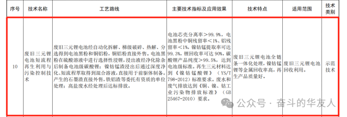 The Short Process for Recycling and Pollution Control of Waste Ternary Lithium Batteries Successfully selected for the 2023 National Catalogue of Advanced Pollution Control Technologies (for Solid Waste and Soil Pollution Control).