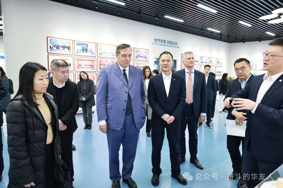 The two sides had in-depth exchanges surrounding the development of the new energy vehicle (NEV) battery industry chain. President Chen Hongliang introduced the company's strategy and layout for building an open Huayou, green Huayou, and technological Huayou on behalf of the company. Prior to the symposium exchange, President Chen accompanied Vice President Puliti and his team on a tour of the headquarters exhibition hall, introducing the company's development history, industrial layout, product applications, project construction, and strategic planning.