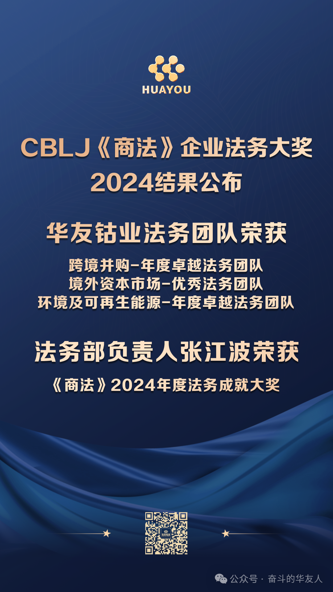 Zhang Jiangbo, Head of the Legal Department, was awarded the Business Law 2024 Achievement Award, and also received a total of five awards, including the Outstanding Lawyer of the Year for Offshore Capital Markets, Outstanding Lawyer of the Year for Domestic Compliance, Outstanding Lawyer of the Year for Cross-Border M&A, and Outstanding Lawyer of the Year for Environment and Renewable Energy, for his outstanding performances in a number of areas.