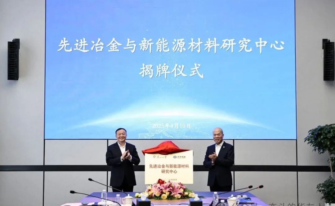 ▲郭海書記與陳雪華董事長共同為先進冶金與新能源材料研究中心揭牌。