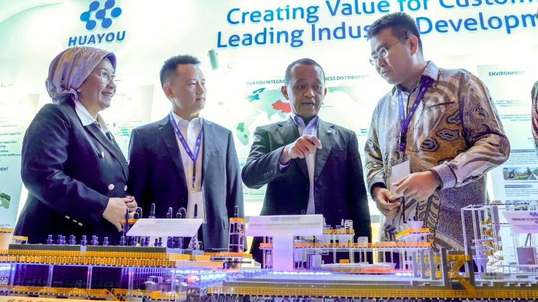 展覽期間,華友展臺(tái)人氣持續(xù)高漲。來(lái)自不同背景的參觀者踴躍交流,尤其對(duì)華友在印尼建設(shè)的綠色智能制造設(shè)施表現(xiàn)出濃厚興趣。巴赫利爾部長(zhǎng)還率多位高級(jí)政府官員蒞臨華友展位,與華友印尼高管團(tuán)隊(duì)交流互動(dòng)。他在現(xiàn)場(chǎng)所展現(xiàn)出的親切與熟悉,不僅體現(xiàn)了政府對(duì)企業(yè)的重視,更傳達(dá)出雙方之間良好的合作關(guān)系與深厚的信任基礎(chǔ)。