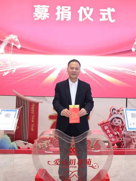 倡議聲落,愛心涌動。公司總裁陳紅良率先將滿載著愛心與期許的紅包投入捐款箱,以實際行動引領公益之風。隨后,各干部員工依次上前,鄭重地將凝聚著自己心意的善款投入捐款箱,一筆筆善款,是華友人對同伴的牽掛,是對社會的責任;一顆顆愛心,是馬年開工最動人的底色,是華友精神最生動的詮釋。